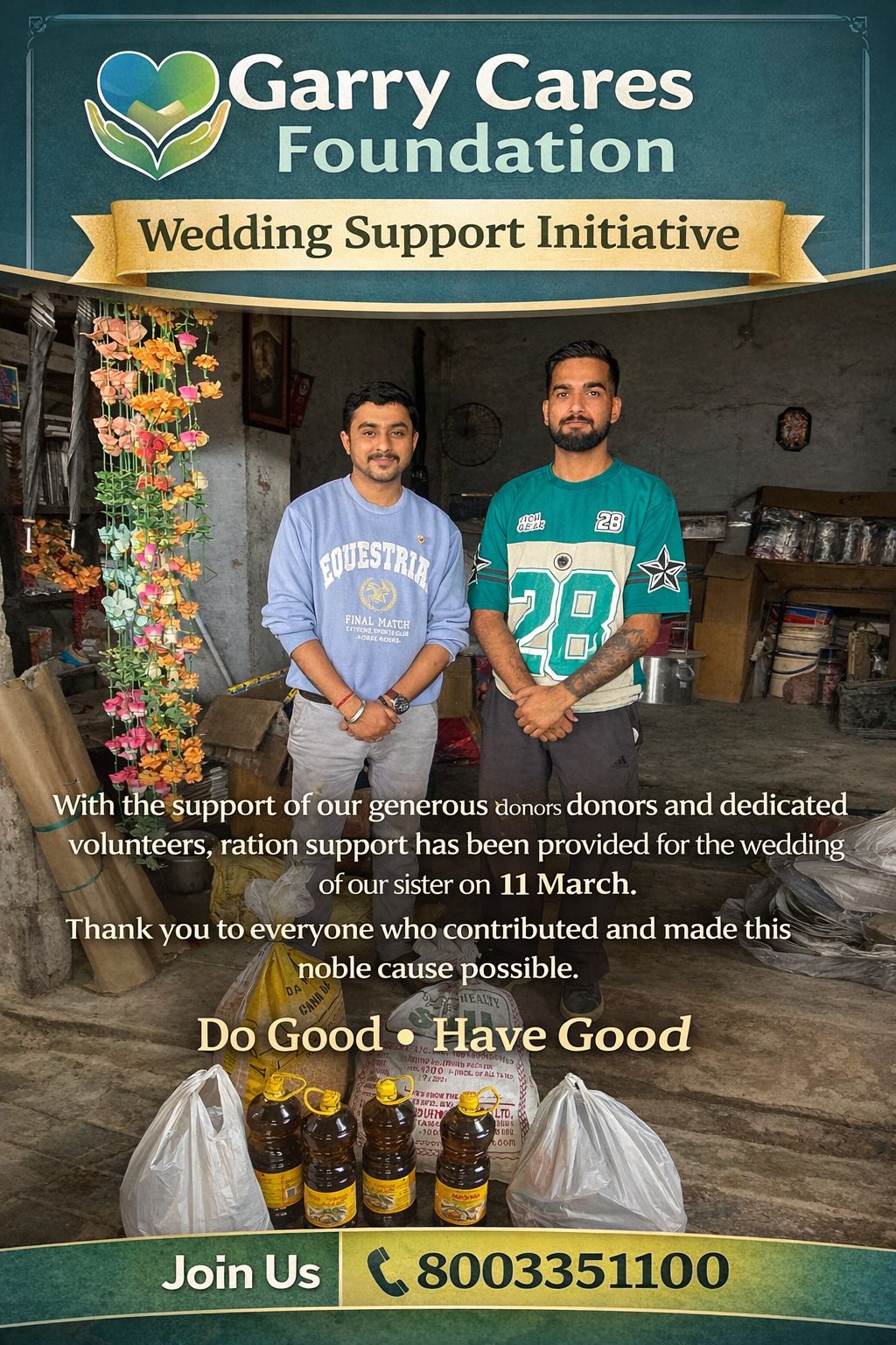 Garry cares foundation ने हमारे स्टार डोनर भाई Vikram Dhiman जी की मदद से एक अपनी बहन की शादी के लिए राशि भेंट की जिसमे हम धाम की राशि दान करने वाले